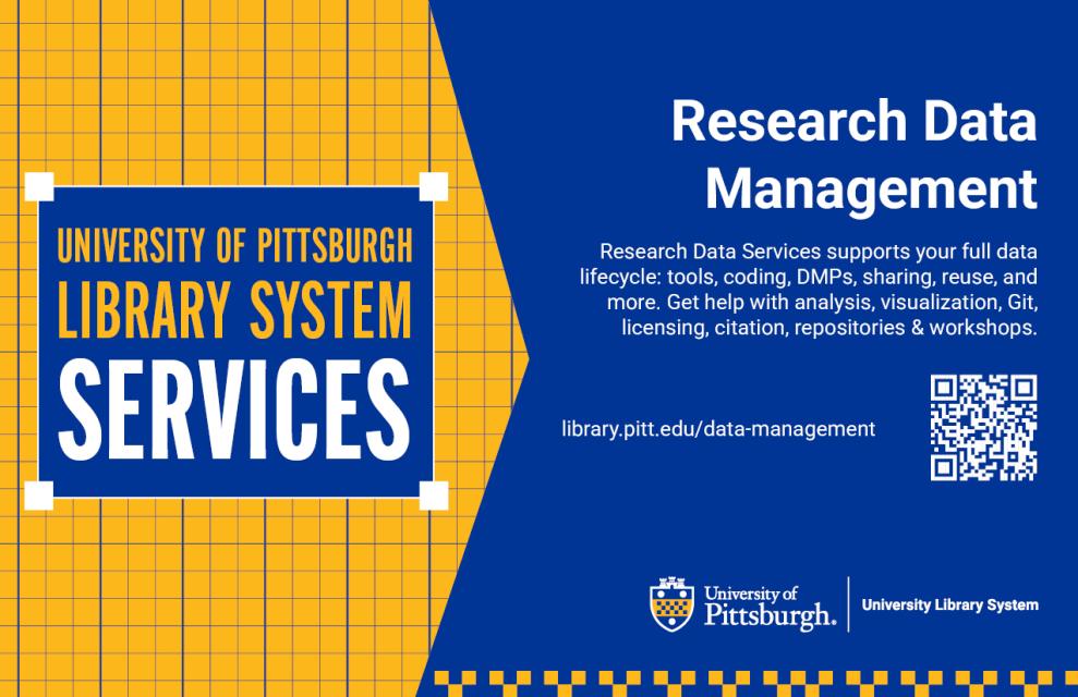 Whether you need guidance on data storage platforms available at Pitt or have data and code that are ready to share, we are available to help you sort through your options.